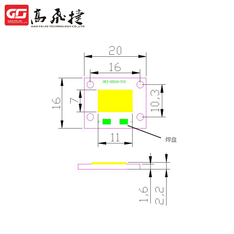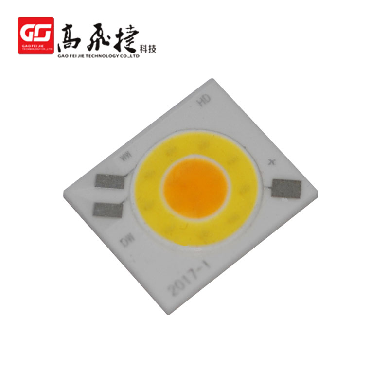從封裝工藝方面,COB光源所使用的支架則有很多種尺寸,其形狀有方形、長方形、橢圓形等尺寸不一的幾十種支架,其材質以鋁為主,也有銅制和陶瓷制的支架,一般都不帶邊腳。