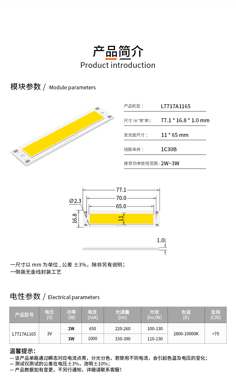熱門標簽: 高飛捷長條系列高功率高亮度倒裝COB光源77.1*16.8mm