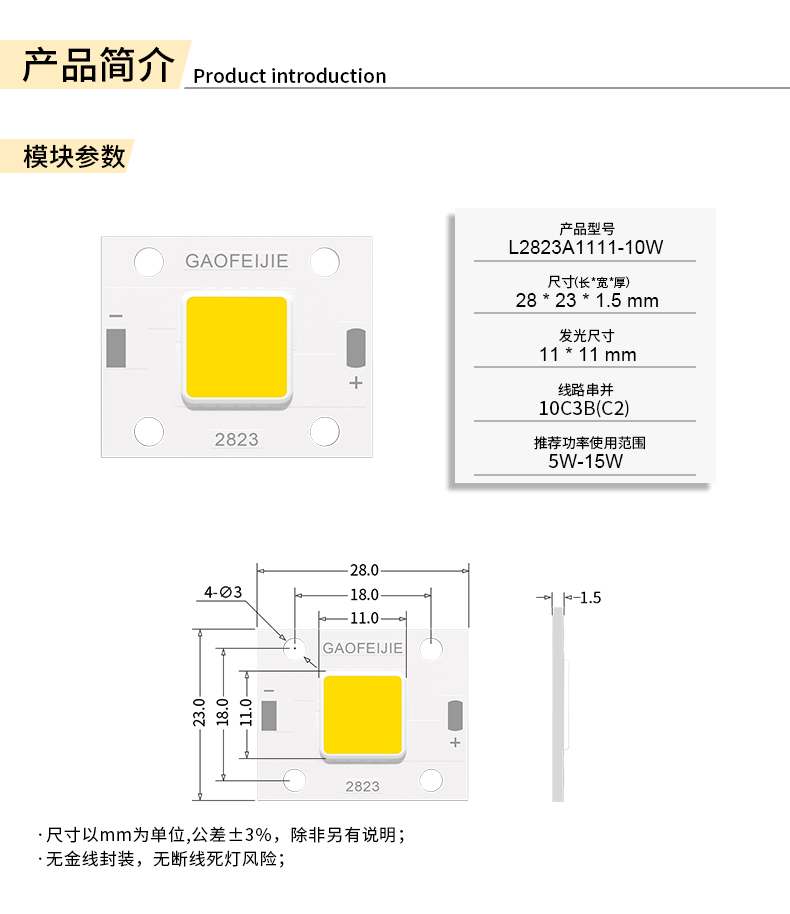 COB光源-戶外照明系列L2823A1111-10W-10C3B